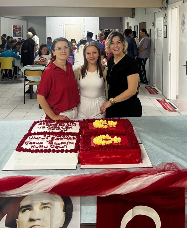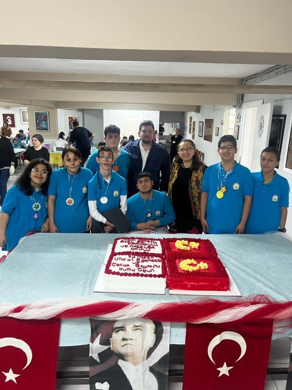 Etkinliklerin finalinde ise göz kamaştıran bir sürpriz vardı! Okulumuz Yiyecek İçecek Hizmetleri Bölümü’nün hazırladığı 23 Nisan temalı pasta, büyük bir coşku ve alkış eşliğinde kesildi. Tatlı bir anıyla taçlanan bu anlamlı gün, hem gönüllerde iz bıraktı hem de dost okullar arasında unutulmaz bir bağ kurdu.